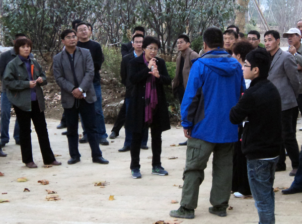 云龍湖珠山景區(qū)工程是徐州市2011年的一項重點(diǎn)綠化工程,李局長對該項目一直非常關(guān)心和重視,繼9月23日陪同市委書記曹新平視察工地之后,此次,園林局又組織幾個重點(diǎn)景觀工程的項目經(jīng)理和主要負(fù)責(zé)人來工地觀摩指導(dǎo),察看工程進(jìn)度。在工地現(xiàn)場,李局長邊走邊看,并不時詢問。當(dāng)行至榆樹下沉廣場時,李局特別指出此處的整體布局、植物配置、景石擺放等都很合理,很有特色,為工程效果增色不少,并提出新的指示,希望我方能夠再接再厲,精益求精,將該項目打造成徐州2011年的一項精品工程。