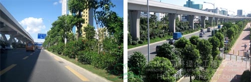 如今,開車行進(jìn)在這條道路上,干凈整潔的路面、開闊通透的視野、清新自然的景觀,給人帶來(lái)閑適、愜意的感覺(jué)?!耙匀藶楸?,尊重自然”的綠化理念,體現(xiàn)在景觀中的每個(gè)細(xì)節(jié);自然環(huán)境與城市環(huán)境的密切結(jié)合,使高架橋的道路通行功能與橋下中央綠化帶的生態(tài)功能有機(jī)融合。整條道路,不僅體顯出深圳這個(gè)濱海大都市獨(dú)有的景觀特色,更彰顯出這個(gè)城市的生機(jī)活力與熱情奔放。