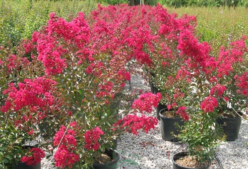 “紅寶石”紫薇:株形矮小,萌蘗性強(qiáng),耐修剪,花期長(zhǎng),花形緊湊,花色深似寶石,既可作盆栽觀賞,又可作花境點(diǎn)綴。