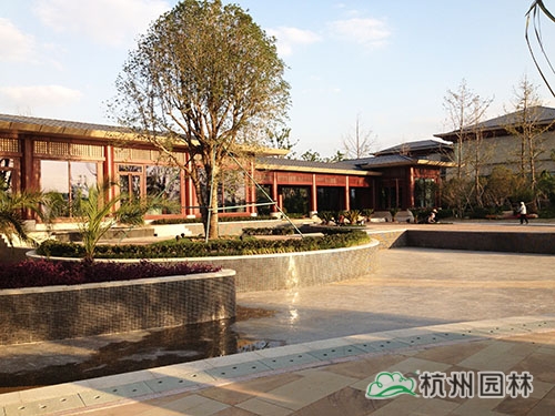 吳江東太湖溫泉度假酒店項目景觀工程(一標段)位于吳江市松陵鎮(zhèn)濱湖路三船河大橋附近,該工程是以景觀綠化為主的綜合性項目,施工面積約10萬平方米,施工內容包括綠化種植、硬質鋪裝、園路施工、景觀小品工程、樁基工程、給排水系統(tǒng)工程及景觀照明等。工程施工內容多,工程量大,工藝相對復雜,對施工技術的要求高。該工程質量標準為確保省優(yōu),爭創(chuàng)魯班;安全生產和文明施工要求為確保省級文明工地,爭創(chuàng)國家級AAA級安全文明標化誠信工地。