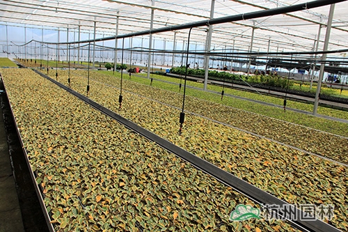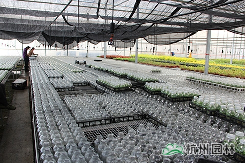 杭州畫境種業(yè)有限公司徑山基地基礎(chǔ)建設(shè)已于2014年基本完工,包括蔭棚地塊建設(shè)、基質(zhì)攪拌、辦公室、倉庫等,其中,新建的溫室大棚已全面投入使用,由公司自行組培的16萬棵火焰南天竹也進入了煉苗階段,畫境種業(yè)的員工和工人們一起,通力合作,爭取以最高的效率完成煉苗工作,總經(jīng)理黃民強也親臨現(xiàn)場,給大家指導(dǎo)與支持。在領(lǐng)導(dǎo)的關(guān)心下,大家信心倍增,計劃在一周內(nèi)完成全部煉苗工作?;鹧婺咸熘?,是公司組培研發(fā)生產(chǎn)的新品種,它植株低矮,枝葉密集;幼葉及冬季葉亮紅色至紫紅色,初秋葉變紅色,比南天竹紅色葉深,變色期早;喜溫暖濕潤、通風(fēng)良好的半陰環(huán)境,較耐寒,生長較快,在園林景觀中的應(yīng)用比較廣泛。
