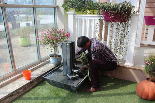 在園藝中心選購(gòu)打造一米花園所需的園林小品、植物材料及其他輔材。