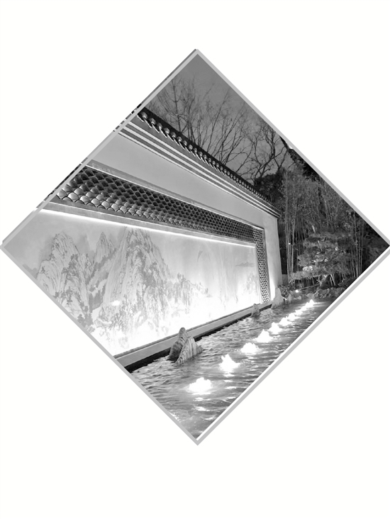 園區(qū)主入口,游人一進(jìn)園,就能看到大瀑布和亭子,再加上富春山居圖造壁,呈現(xiàn)出浙江山水風(fēng)景特點。浙江省地形復(fù)雜,其中三分之二的面積是山地丘陵,所以,浙江園也是依此而建的。為了能讓往來的游客在進(jìn)園時就直觀的感受到這種景觀效果,盧山和團(tuán)隊為游客們設(shè)計了兩條游覽線,一條從入口進(jìn)來之后向山上走,體驗登高望遠(yuǎn),感受山林景觀的游覽過程;還有一條是從庭院路線走的,就是讓游客有行走在家宅的感覺。在設(shè)計時,盧山選取了明清時期的建筑形態(tài),粉墻黛瓦。建筑上層是黑的,墻是白的,展現(xiàn)出浙江傳統(tǒng)建筑的文化元素。盧山還說:“眾所周知,浙江的茶葉非常有名,我們在展園里打造成了一個茶山景觀,再配上一些花卉??傮w上,是要展示出一個富美浙江主題的庭院?!?/p>