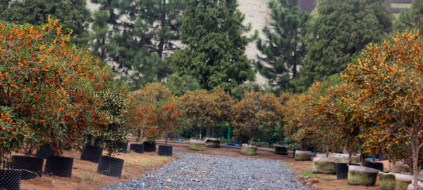 桂花是基地的主導(dǎo)苗木品種,公司依托雄厚的專業(yè)力量和研發(fā)能力,運(yùn)用現(xiàn)代化的繁育設(shè)施和技術(shù),生產(chǎn)各類桂花觀賞盆栽苗、品種容器苗、工程苗、地被容器苗和林木容器苗等,桂花研發(fā)和產(chǎn)業(yè)化程度達(dá)到國內(nèi)外領(lǐng)先水平,是“中國桂花品種繁育中心”,承擔(dān)著國內(nèi)外專家的桂花課題研究、交流考察、新品種研發(fā)任務(wù);建有中國第一個桂花品種資源庫,收集桂花品種100多個,是國際上收集桂花品種最多最全的種質(zhì)資源庫之一;是國際桂花登錄組織認(rèn)可的桂花品種國際測試中心;自主研發(fā)了“杭州黃”等4個桂花新品種并通過省級審定,擁有自主知識產(chǎn)權(quán);承擔(dān)的科研項(xiàng)目“桂花品種基因(種質(zhì)資源)庫建設(shè)與優(yōu)良品種選育推廣”榮獲“2007年度杭州市科技進(jìn)步一等獎”等,在桂花的科研方面,可謂是碩果累累。